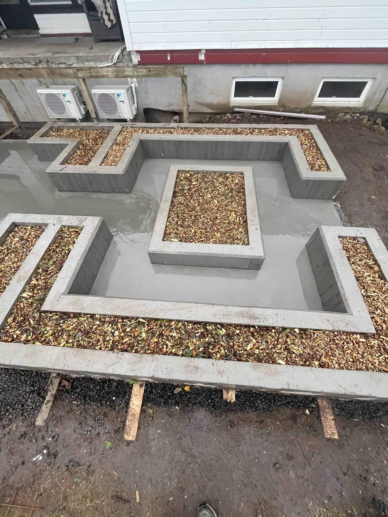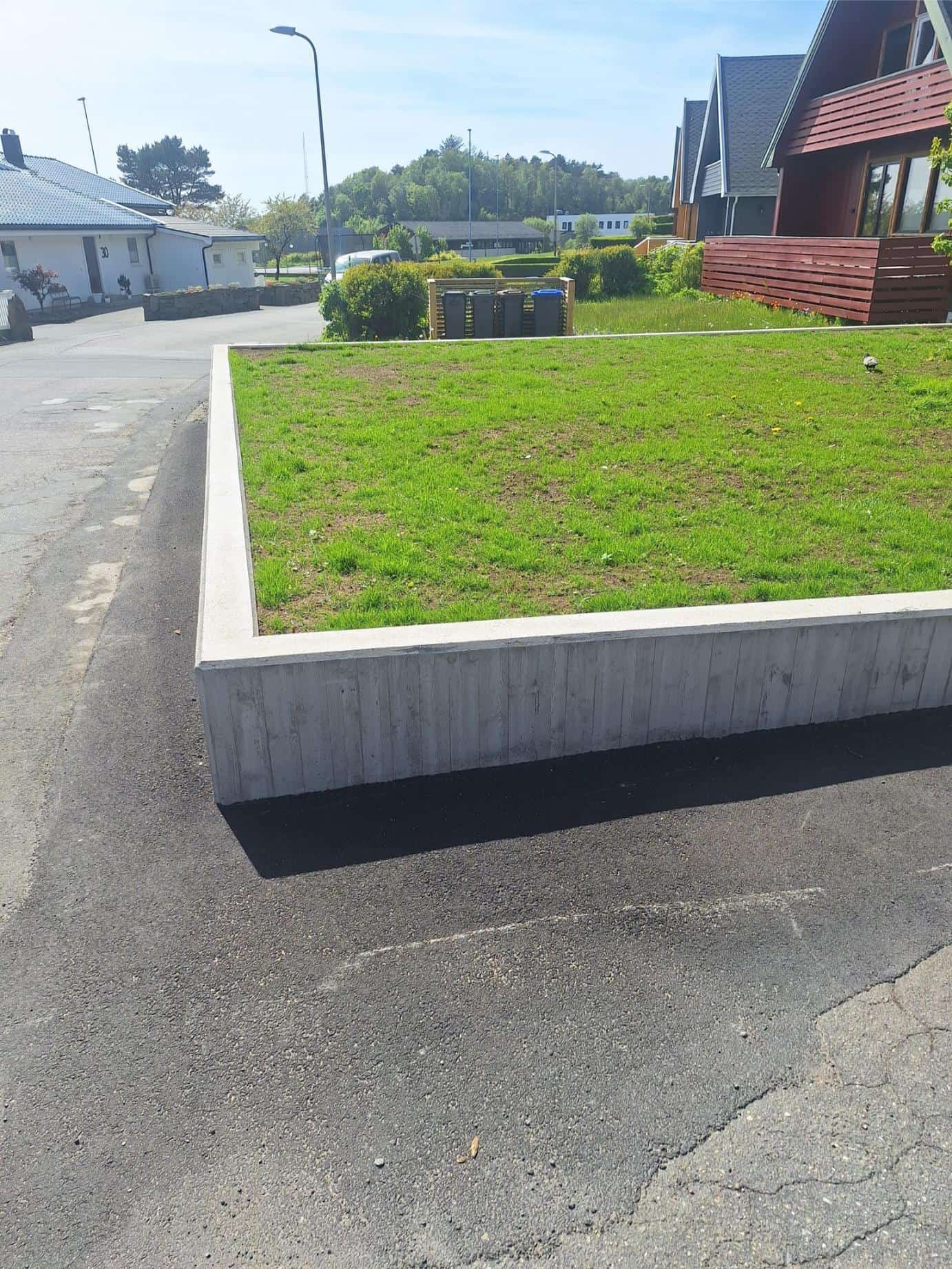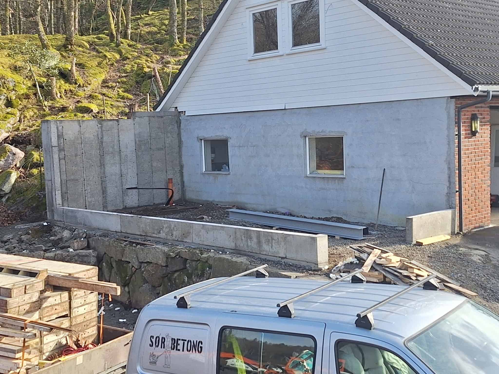 Vi støper ringmurer og forstøtningsmurer som gir strukturell støtte og et godt visuelt resultat – tilpasset både terreng og bygg.