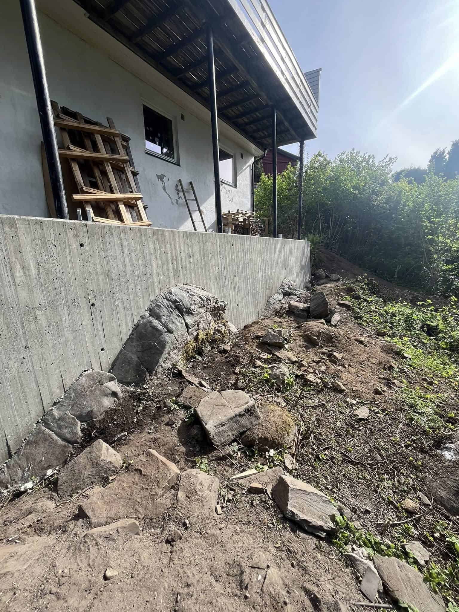 Sette opp ny støttemur samt ny veranda
